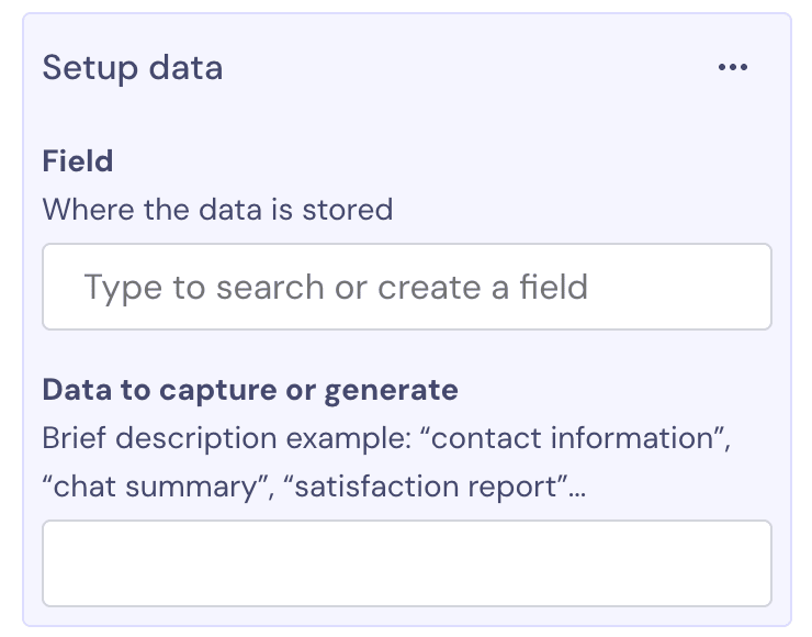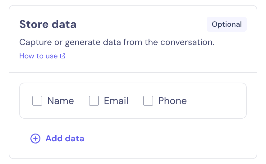 In this section of the panel, you can define the user data the AI Agent should collect and under what fields it should store it.
